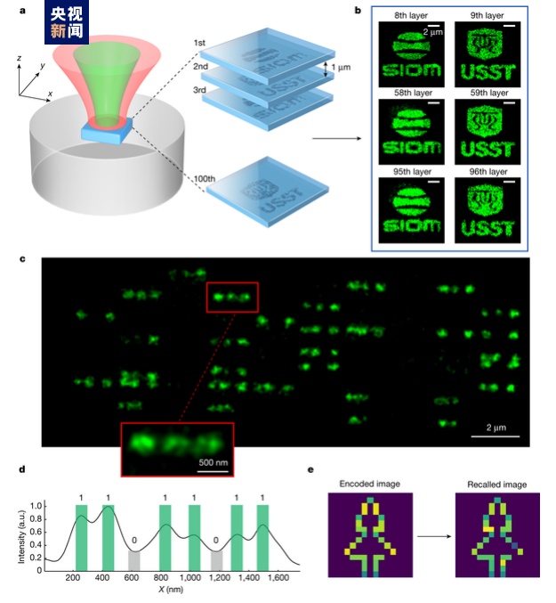 近日,中國科學院上海光學精密機械研究所(以下簡稱上海光機所)與上海理工大學等科研單位合作,在超大容量三維超分辨光存儲研究中取得突破性進展。研究團隊利用國際首創的雙光束調控聚集誘導發光超分辨光存儲技術,實驗上首次在信息寫入和讀出均突破了衍射極限的限制,實現了點尺寸為54nm、道間距為70nm的超分辨數據存儲,并完成了100層的多層記錄,單盤等效容量達Pb量級,對于我國在信息存儲領域突破“卡脖子”障礙、實現數字經濟的可持續發展具有重大意義。相關研究成果于2024年2月22日發表于《自然》(Nature)雜志。